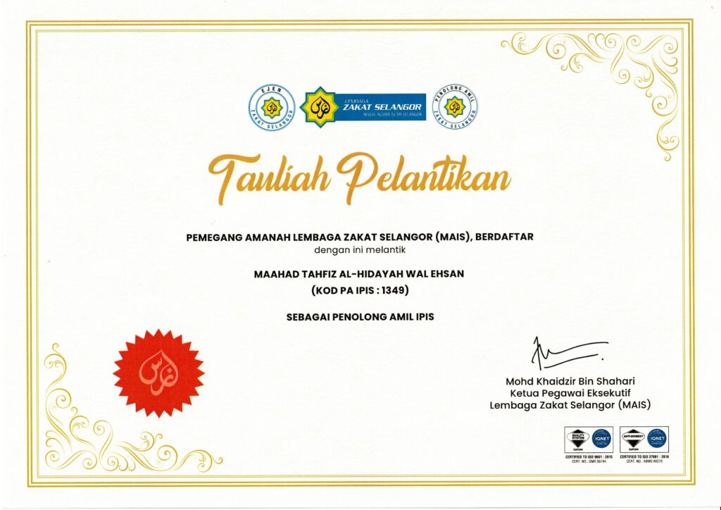 Kami adalah Penolong Amil Bertauliah yang dilantik oleh Lembaga Zakat Selangor